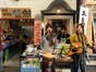 観光通りアーケードの入り口で、新鮮野菜や惣菜の販売と五島うどんを食べれるお店を紹介します。西海新鮮処 大空と大地さんです。今日はお好み焼を始められるということでライブもありました。